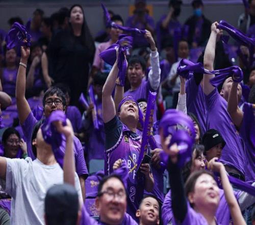 比赛现场北控吉祥物紫禁龙随机空降