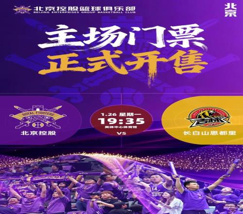 【票务公告】北控男篮对阵吉林男篮主场门票将于1月19日中午1218开售